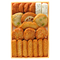 ごぼう天×4枚、しそ棒天×2枚、枝豆天×2枚、れんこん揚×1枚、桜島天×1枚、チーズ天×3枚、棒天×7枚 内容量:20個 賞味期間:出荷日を含め7日間(要冷蔵) サイズ:縦25cm×横17cm×高さ4.5cm アレルギー表示『小麦』『卵』『乳』
